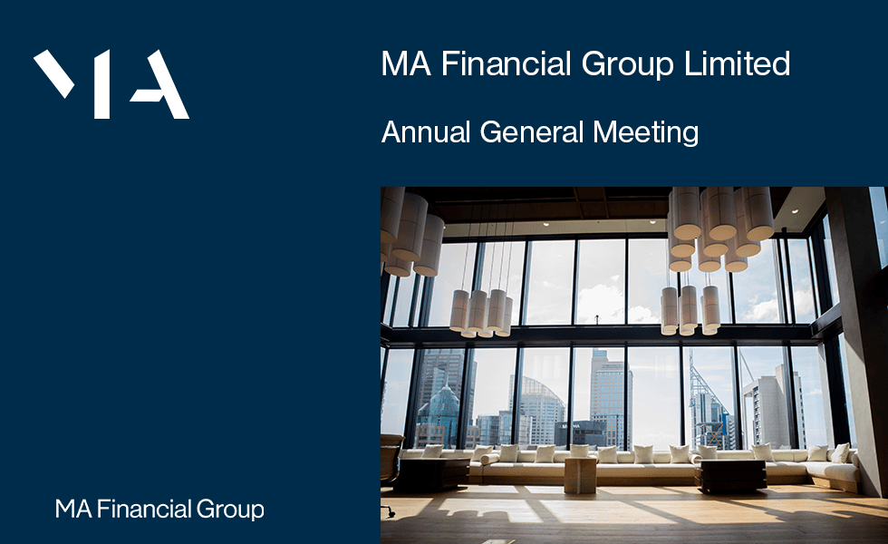 The Annual General Meeting (AGM) of MA Financial Group was held on Level 27, Brookfield Place, 10 Carrington Street, Sydney on Thursday, 5 May 2022.